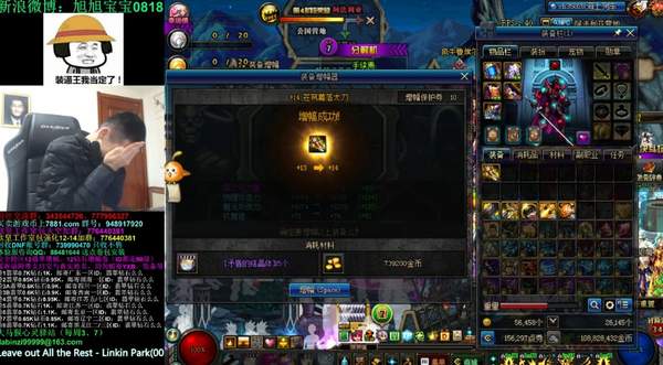 原来是近日旭旭宝宝要把“苍穹幕落太刀”上到15,这几日一开播就开始给自己的“太刀”上15,几次14上15都功败垂成,虽然准备了大量的增幅材料,还耗费了很多时间,各种激动,求天求地,心态爆炸,但结果是令人痛心的,+15是没有成功的,那件装备价值200万左右,但是如果算上材料损失的话,旭旭宝宝这次损失可是十分惨重!