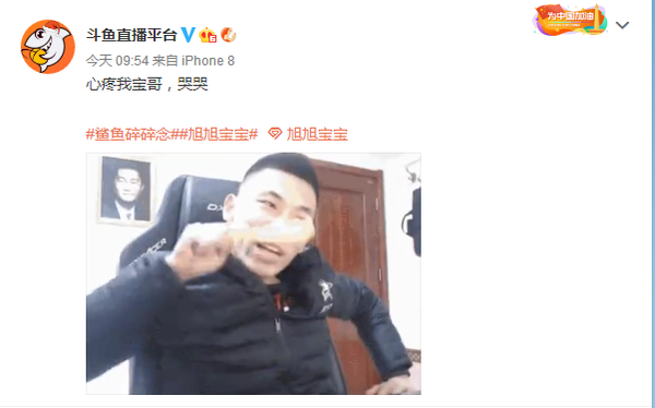 玩家调侃“苍穹幕落太刀”其实是“苍穹落泪太刀”吧,就连斗鱼官方都发博道“心疼我宝哥,哭哭”,还有网友调侃国服第一红眼暂时掉线,正在重新连接。