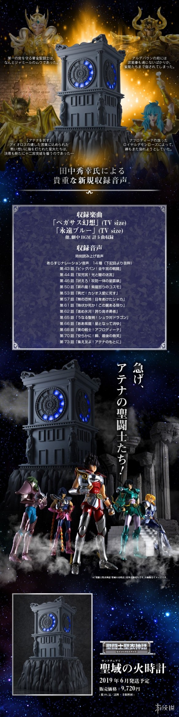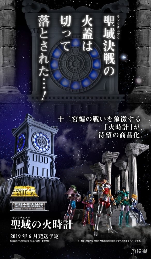 《圣斗士圣衣神话》圣域的火时计已经开始预订,尺寸全高约有26厘米,参考价格约9720(含税,约为人民币600元)元日币,预计2019年06月推出。