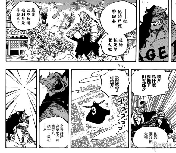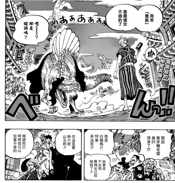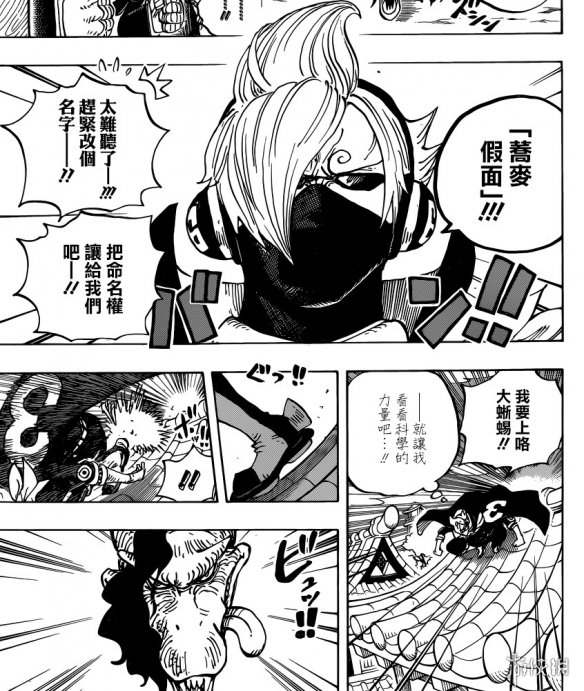 《海贼王》漫画931话汉化版公开了,本集的剧情有着爆炸式的展开。山治为了不暴露草帽团成员的身份选择使用之前哥哥给他的杰尔马的战斗服,并且在变身之后使用“荞麦假面”的称号和恐龙人对战。这个战斗服还有一个非常强悍的技能“隐形”,山治多年以来想要变成隐形人的梦想终于实现了。