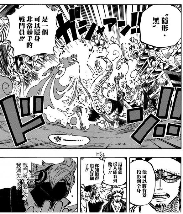 之前罗在北海的时候,就听说过杰马尔66的“黑隐形”是可以隐身的战斗员,这个能力也是让他变得非常难以对付。山治和凯多手下展开大战,罗、乌索普和弗兰奇等人决定去财神镇躲避。