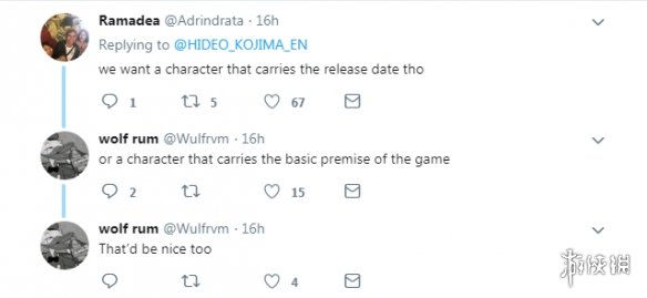 这位网友的要求就比较现实了:“我们想要一个带着发售日的人物角色。”