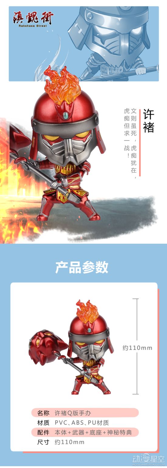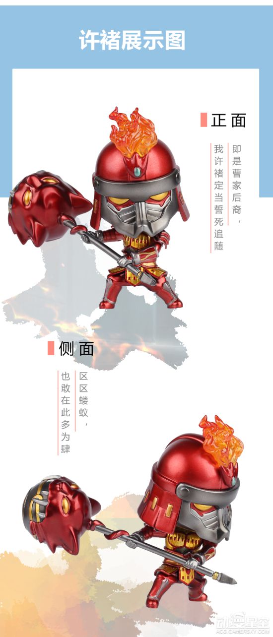 《镇魂街》曹焱兵&许褚Q版手办,高约10厘米,单个手办售价为188元,一起购买为370元。本作非常适合静态摆设、个人收藏等等,现在参加众筹还有小礼物,不要错过。
