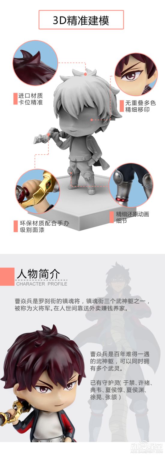 国产动漫作品《镇魂街》一直都是有着非常不错的人气,现在国内的JacksDo模型工作室联合《镇魂街》推出Q版曹焱兵和Q版许褚手办的众筹活动,并且公开了很多的展示图。这款Q版曹焱兵手办以2.5头身约10CM的可爱Q版比例,呈现于玩家眼前,既帅气又很有萌点。