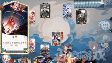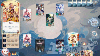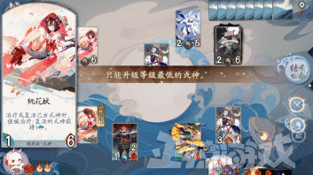 这下对局的战斗节奏大家就一目了然了,双方的目就是让对方的30点血归0。开始时每回合除了升级式神之外都要让一个崽上阵与对面互锤,在双方式神都3级之后大招频发,节奏开始加快直到游戏结束。