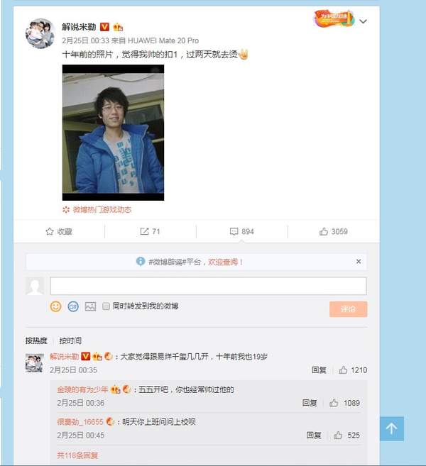 日前,《英雄联盟》LPL解说米勒在微博晒出自己十年前的旧照,并且喊话众网友:“十年前的照片,觉得我帅的扣1,过两天就去烫”。不少玩家表示,这个时候的米勒还很青涩,发量也感人。