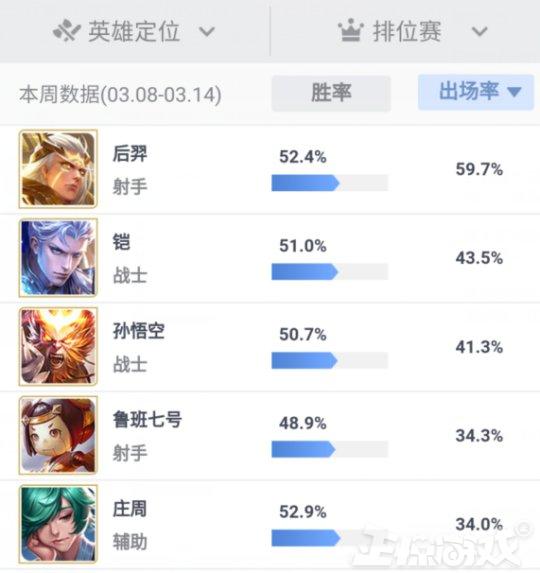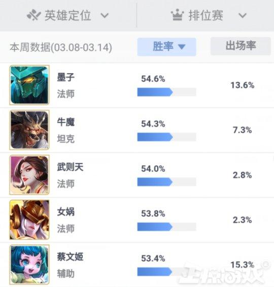 关于本周的英雄胜率方面以及出场率方面已经可以说是老生常谈了,墨子依旧长期占据着胜率榜第一的位置,暂时无人可以撼动,但武则天的胜率仍然在慢慢逼近。而出场率榜第一的位置仍然是平民英雄后羿。