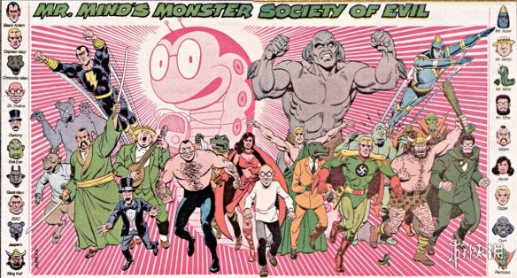 “邪恶怪物协会”成员包括主导者“冥思螨”、黑亚当、纳粹队长、希瓦纳博士、魔眼、天启星骑士“饥荒”(外形是鳄鱼),鳄鱼人赫基默、大力士伊班、纳粹士官长、鳄鱼人Jorrk(科学家)、兽人“金刚”、神秘博士、原子先生、班卓琴先生、忍术大师“日本一”、大法师Oggar、外星杀手Oom、沙魔反派“Ramulus”、“傀儡”(利用木偶作战,本人有可能也是木偶)、天启星骑士“战争”。