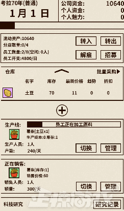 游戏玩法很简单,整个生产过程是自动的,你只需要及时购买材料就好,当你招到经理人后,就连材料都不用自己买了,平时记着给主角的老爸看病就行。