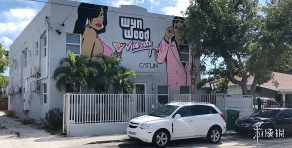 这位玩家在旅行时发现迈阿密的一条街道上有纪念《侠盗猎车手:罪恶都市》的墙壁涂鸦,上面的两位角色分别是游戏中的双胞胎之一(Bella或者是Stella)以及福雷利家族的老大Sonny Forelli。