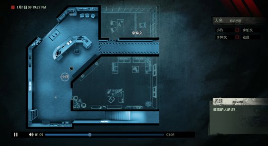 要想对案件全盘掌握,我们就必须反复重放各种声音,并随时根据不同角色的谈话内容来推测“音源”的身份,然后进行标记。最后根据各处所获取的关键信息,理清出整个案件的来龙去脉,获得最终真相。