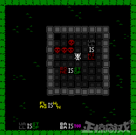 然后你再把“石头”推上去,把句子改成“石头是赢(Rock Is Win)”,接着控制墙走到石头上就算过关了。