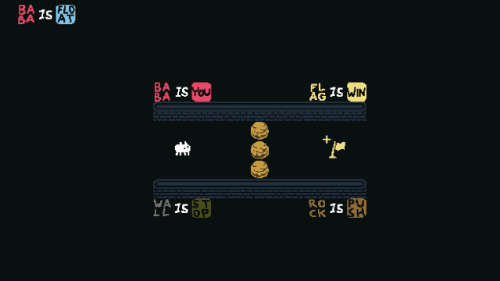 游戏后期的关卡会更加复杂,但万变不离其宗。每关的句子都是由“名词(Baba、石头、墙)”+“逻辑词(是、和)”+“定义(赢、死、停)”组成。《Baba Is You》需要你放开脑洞,大胆组合。