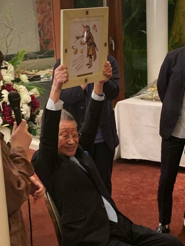 作为同为《勇者斗恶龙》系列游戏御用角色设定的漫画大师鸟山明则亲自创作了一幅插画赠送给了椙山浩一,画中《DQ》的代表“吉祥物”史莱姆化成音符,在椙山浩一大师的指挥棒下翩翩起舞,无论构图还是立意均无可挑剔,不但让椙山浩一本人喜笑颜开分外感动,粉丝们也纷纷惊呼鸟山明大师就是大师啊!