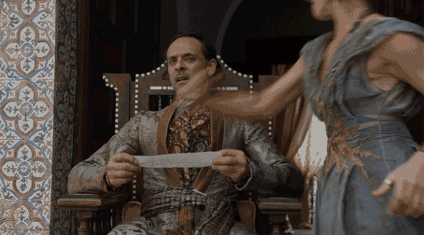 第四季真是没少死人,被詹姆偷偷救出的小恶魔,溜进父亲房间,却发现自己深爱的雪伊爬上了泰温的床。含泪杀死背叛了自己的雪伊后,提利昂拿着十字弩去对峙正在上厕所的父亲,在泰温一而再再而三地说出“妓女”这个最能触碰提利昂痛点的词后,毫不犹豫用弩射死了父亲,连射两箭,干净利索——兰尼斯特拉出来的都是金子,厕所也算是本剧最奇特的死亡地点了。