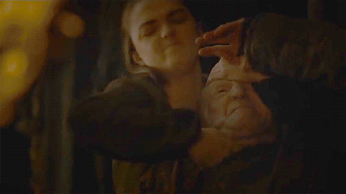 这一集的疯狂死人还没有结束,当终于师出有名,离开布拉佛斯回到维斯特洛的艾莉亚·史塔克,揭下自己的“脸皮”露出真面目时,她划开瓦德·佛雷喉咙的深深一刀,也总算是为惨死的母亲和哥哥罗柏报了仇。