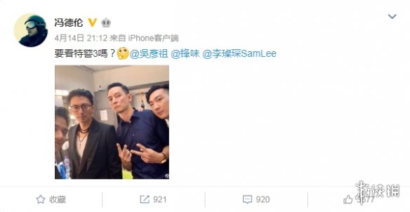 在当晚,冯德伦首先在微博上晒出合照,问:“要看特警3吗?”照片中四位男神面对镜头,依旧非常帅气有型,令粉丝们欣喜不已。