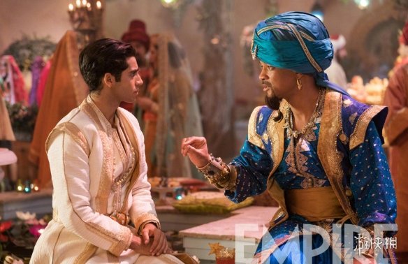 迪士尼真人电影《阿拉丁》即将载歌载舞欢乐来袭。由英国名导盖·里奇掌舵的《阿拉丁》今日曝光全新剧照。由“史皇”威尔·史密斯扮演的灯神精灵和梅纳·马苏德扮演的阿拉丁同框亮相,“史皇”的新造型华丽抢眼,夸张的蓝色头巾配上花纹繁复的蓝色衣服,他就是最靓的“蓝精灵”。
