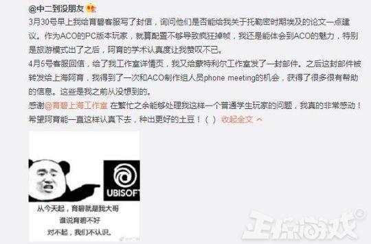 事后激动的玩家马上发了该微博,并认育碧作为大哥。育碧上海工作室也转发了该微博成功为育碧吸了一波粉。