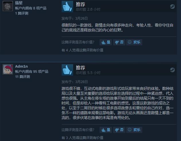 但玩家对这款游戏的评价,整体来讲还是非常高的,像是在看一部有声小说,每一个选择,都是在考验自己的人性。