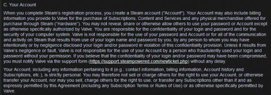 在Steam订阅者协议的第C节有一段如下内容:
