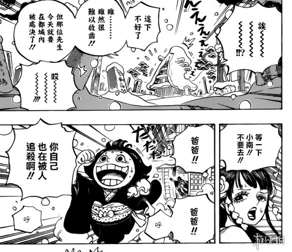 《海贼王》941话汉化版公开,本集再次公开了一个重要角色的身份,丑三小子被大蛇的手下抓住,而他的真正身份也是光月家的家臣,大蛇没有想到他还活着。为了震慑光月家的余党,大蛇决定将他公开处刑,而且大蛇也会亲自去刑场,这一画面将会通过“光画田螺”向全国直播。