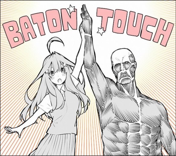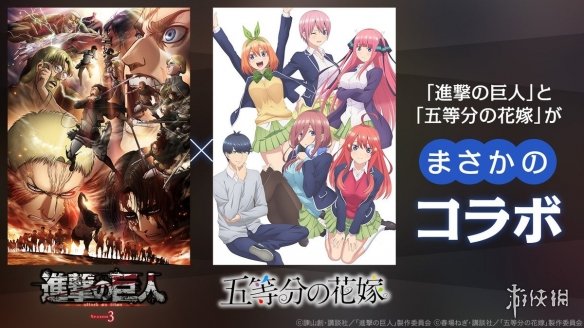 昨日(4月26日),谏山创的《进击的巨人》与春场葱的《五等分的花嫁》两部作品将联动宣传,纪念视频“進撃の花嫁”将会在4月28日中午“GYAO!”放映。