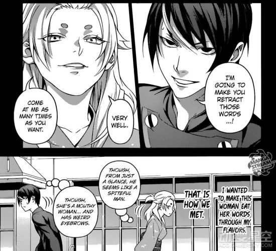 《食戟之灵》漫画各种神剧情频出,除去各种加料料理之外,还有异能出现。幸平创真突然多了一个“哥哥”才波朝阳,而这个哥哥一出现就和创真抢夺大小姐。两人最终对决已经展开,两人的料理都已经完成,才波朝阳向大小姐表示自己的料理已经被大小姐的母亲认可,只有他才能拯救拥有神之舌的人,这时候意想不到人出现在赛场。
