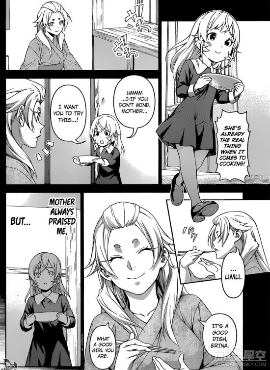 有着“鬼父”之称的薙切蓟开始了回忆,他和真凪的相遇颇具戏剧性,之后真凪因为“神之舌”的异能不能再吃东西而离家出走之后,薙切蓟决定用自己的方法来改变着一切。后面他的种种行动都是想要拯救真凪和绘里奈,但是却没有结果。对于才波朝阳能解除神之舌异能带来痛苦,药爹却表示恐怕不行。
