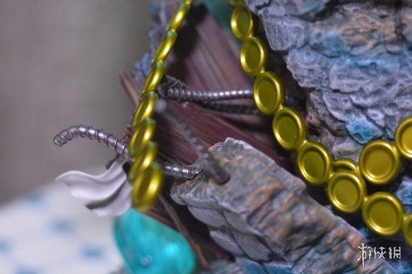 除了采用透明材质制作的大翅膀十分飘逸之外,雕像底座的制作也是很精细,石料、木材还有布料都展现的很好,不死鸟尾部采用金色的涂装,效果十分突出,整个雕像都栩栩如生。