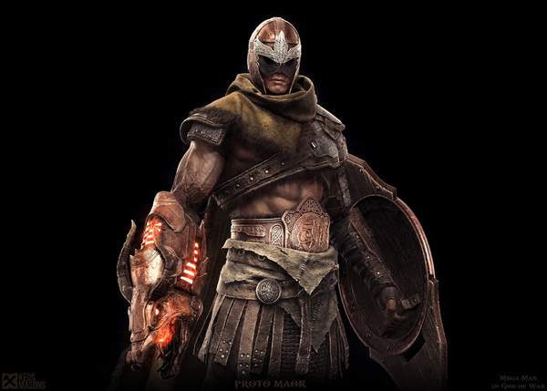 概念艺术家Macro Plouffe就带来了他的答案,创作了新版《战神》风格的《洛克人》形象,角色一席北欧风格的服装和造型,手炮也变成了类似于龙头(也有点像牛)的造型,似乎随时都能喷射龙息。