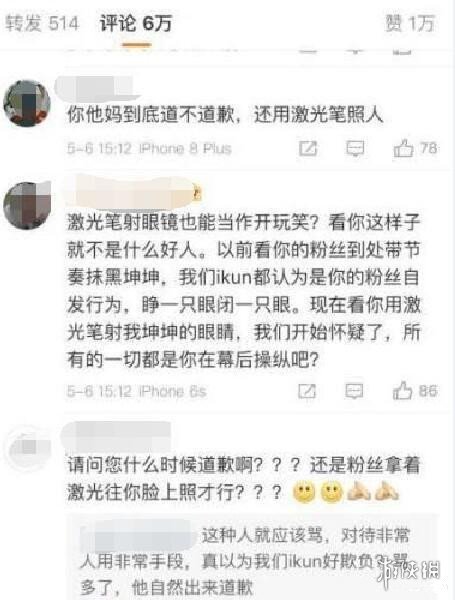例如曾经的激光笔事件,由于蔡徐坤演唱会被人用激光笔射眼睛,ikun们就失去了理智,竟然就将矛头对准了一位毫不知情且儒雅随和的微博博主带带大师兄孙笑川,一时间他的评论私信充满了各种辱骂的语言。