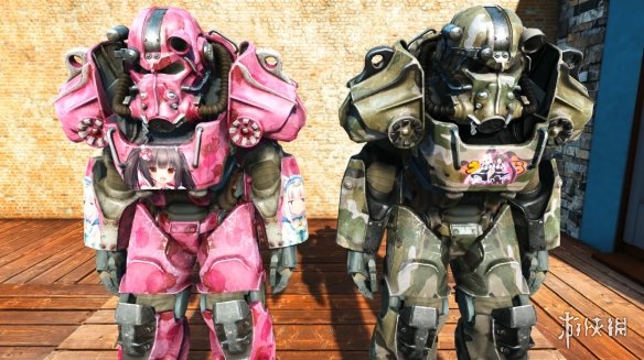 最具恶趣味的是,因为动漫MOD的美化效果不包含男性,所以男性角色依旧是废土写实画风。油管主让一个饱经辐射折磨的大爷身边站满靓丽的少女,组成了比二次元MOD本身更具反差性的场景,相当有冲击力。当然,只有萌妹子是不够的,痛动力装甲、死宅抱枕、角色卡片全都要安排上。