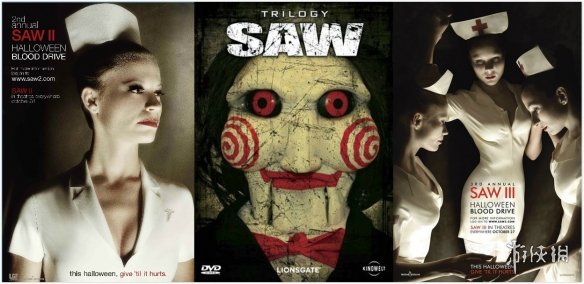 《电锯惊魂》三部曲海报