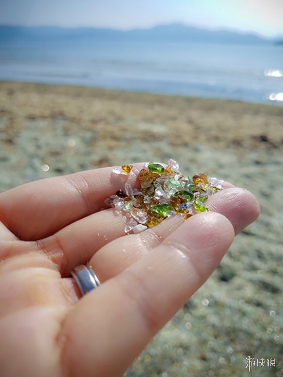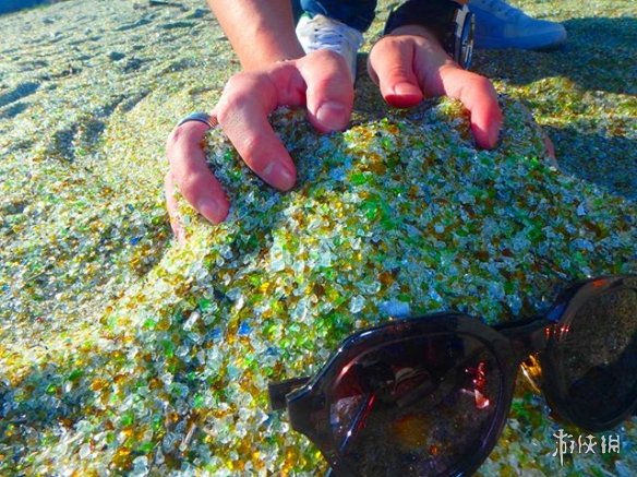 这些小石子神似昂贵的宝石,但是其实只是一大堆玻璃的小碎片。远远望去这片沙滩的颜色主要偏白绿,这是因为这些石子以前都是废弃玻璃瓶罐制成的。