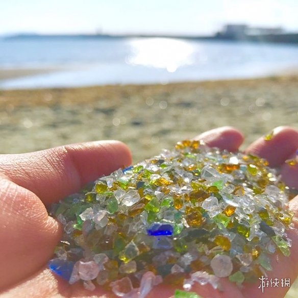 过去这块靠海的地方在夏天时因藻类分解会产生难闻的气味。为了解决这个问题,长崎县将当地废弃的玻璃空罐敲碎磨平后放入这块地,阻止藻类增生,改善这片沙滩的水质气味。不久后气味问题也就消失了,只留下了这片美丽的“宝石”沙滩。