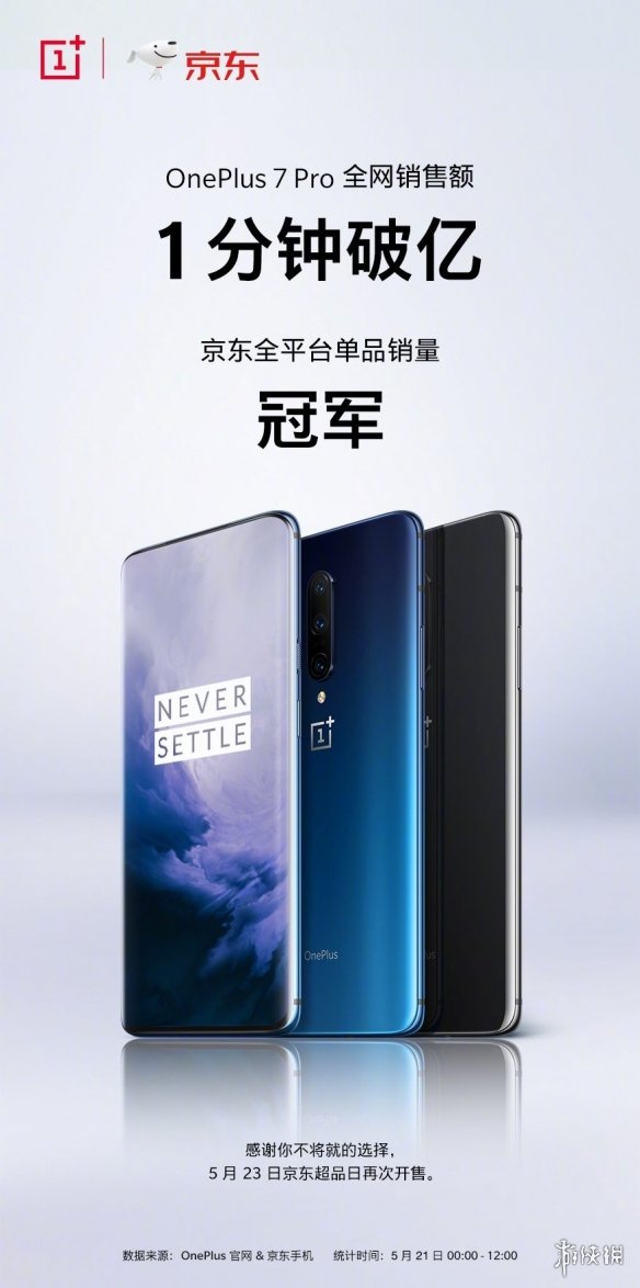 今天中午,一加CEO刘作虎在微博上宣布,一加7 Pro全网销售额1分钟破亿,同时拿下京东全平台单品销量冠军。