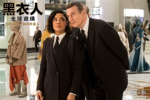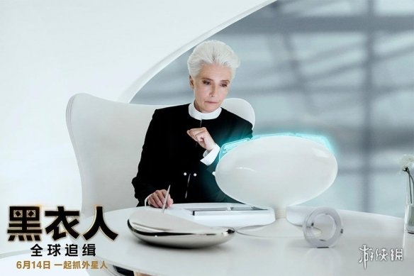 黑衣人天团四人组置身于未来光速列车。“锤哥”克里斯·海姆斯沃斯和搭档“女武神”泰莎·汤普森配备重型黑科技枪械整装待发,“威风大佬T”连姆·尼森和黑衣人组织“精神领袖”探员O(艾玛·汤普森饰演)也携一众外星探员神气登场。