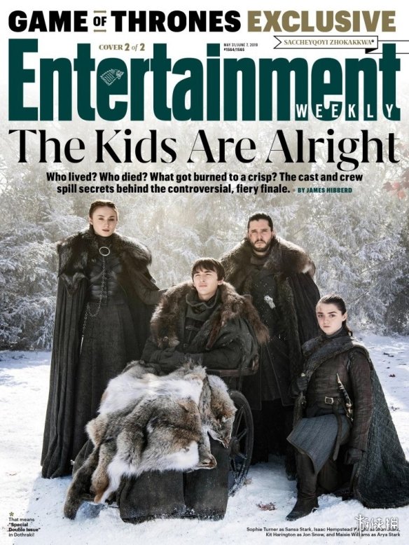 丹妮莉丝和狼家分别登上《娱乐周刊》封面,一边是形单影只的龙妈,另一边则是布兰、珊莎、艾莉亚和雪诺的史塔克一家。