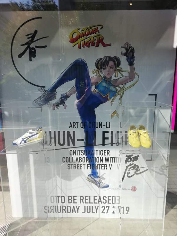 此次展览为了宣传鬼冢虎与卡普空联手推出《街霸》春丽主题Mexico 66 SD运动鞋,这款运动鞋预计7月27日在日本发售,敬请期待。