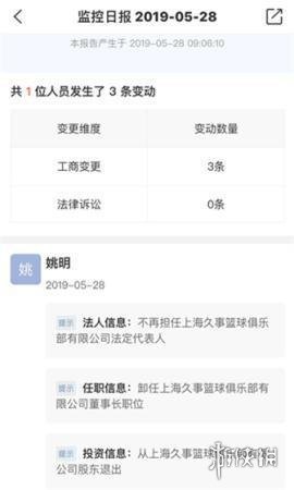 上海久事篮球俱乐部发布变动信息,姚明不再担任上海久事篮球俱乐部有限公司法定代表人,卸任上海久事篮球俱乐部有限公司董事长职位,从上海久事篮球俱乐部有限公司股东退出。球队前副总钱安柯担任总经理。