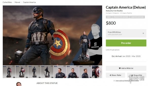 这款雕像售价800美元(约合人民币5524元),将在2020年第一季度正式发售,目前已经开启预定。