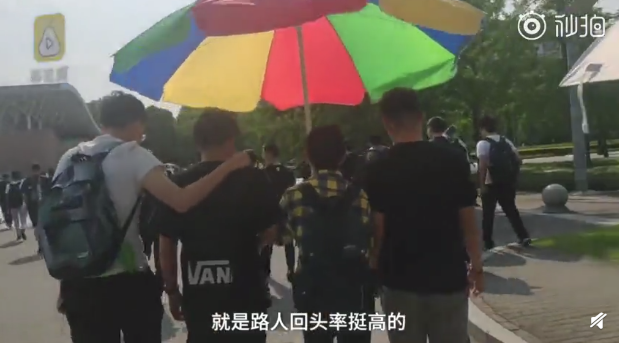 对于这四位小男生的行为,小编表示十二分的理解, 太热了就打伞呀,还分什么男女生。