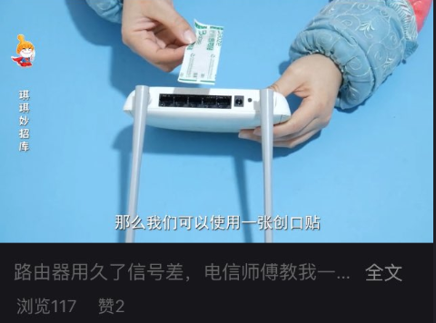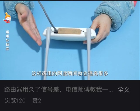 刚刚我妈分享给我一个视频,讲如何能让路由器信号变强。