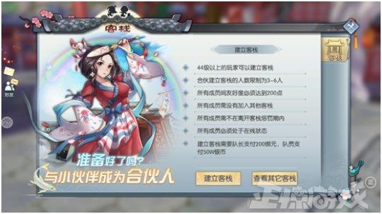 相信这也是玩家们最为期待的一个系统,玩家可以在达到44级后组队建立客栈。不过建立的前提是成员之间的好感度必须达到200,毕竟如果一群陌生人开了一个客栈,那相信也是开不长会倒闭滴。