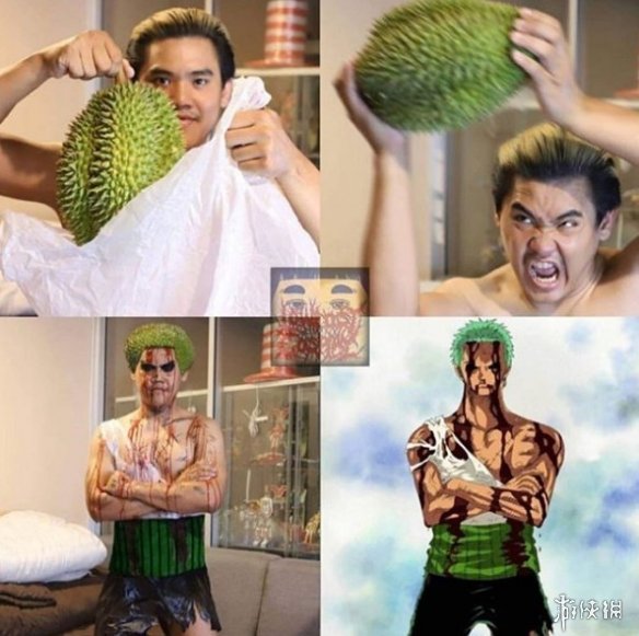 还有之前那个令人印象深刻的受伤的索隆,以及各种食物cos的动漫角色,真是让人感叹他的脑洞是不是比黑洞还大。