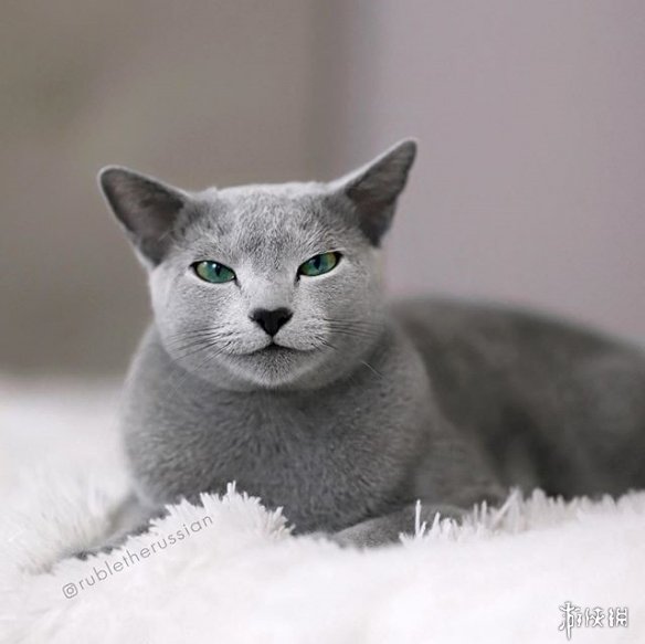 Ruble是俄罗斯蓝猫中比较稀有的品种,天生灰蓝毛色,琥珀绿眼睛和猫科动物的变化瞳孔,更是舍人魂魄。简直是猫界中的绅士和贵族。