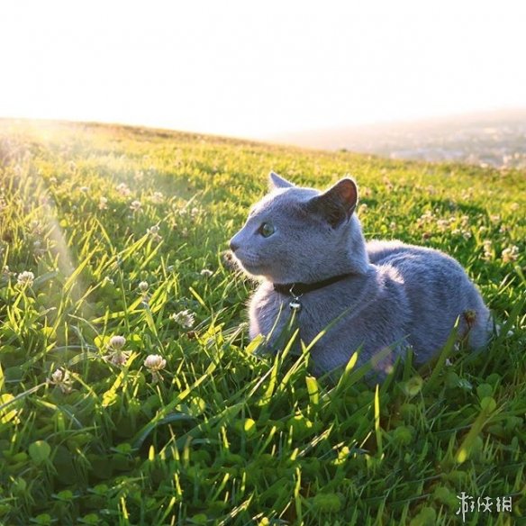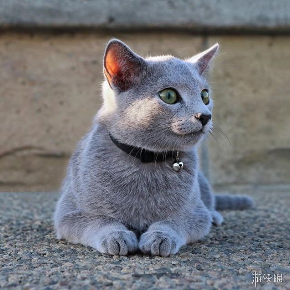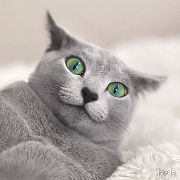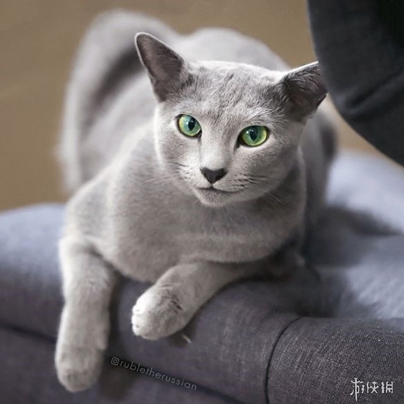 这只蓝公猫的不仅毛色顺滑,一对绿色双眼更是撩人!