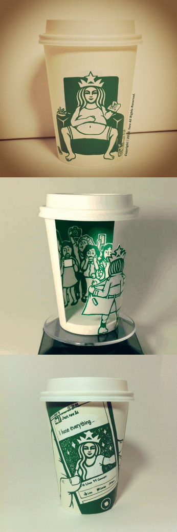 你可曾想过,原来星巴克的纸杯也能成为艺术品?来自韩国的艺术家Soo Min Ki即发挥他的创意,将再平常不过的星巴克纸杯当作他恣意挥洒的画布,对商标上的美人鱼商标展开各种二创!
