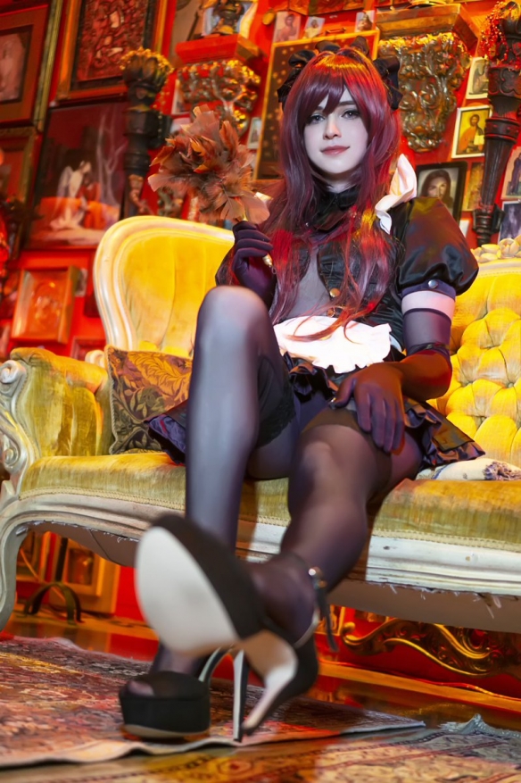 从图中可以看到,Sneaky身穿女仆装展示妩媚姿态,那双细长腿更是让无数妹子羡慕嫉妒。看来Sneaky在女友的帮助下,在女装的道路上越走越远了。